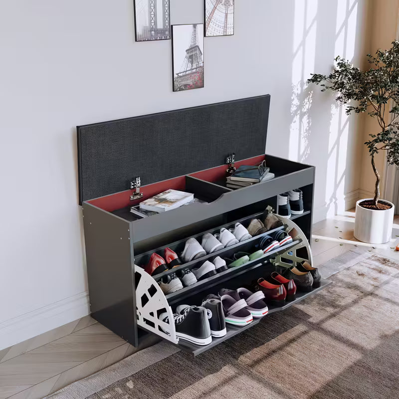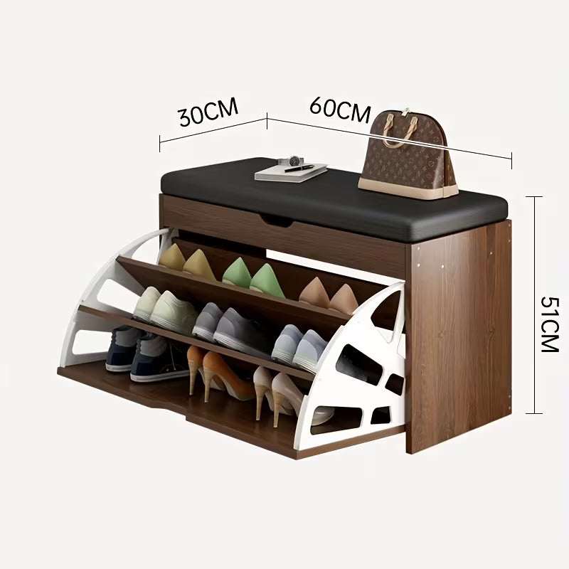 à chaussures de 23,62 pouces,   multifonction intégrée pour hall, chambre et couloir, avec 3 niveaux de rangement, coussin en simili cuir souple,    , facile à installer, cadeau idéal Détails du produit 0